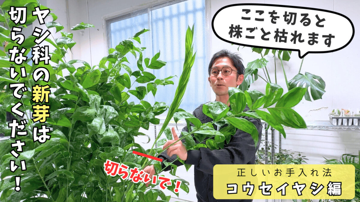 コウセイヤシを健やかに育てるための正しい剪定方法と日頃のチェックポイントを、プロが実演しながらわかりやすく解説する動画です。傷んだ葉…